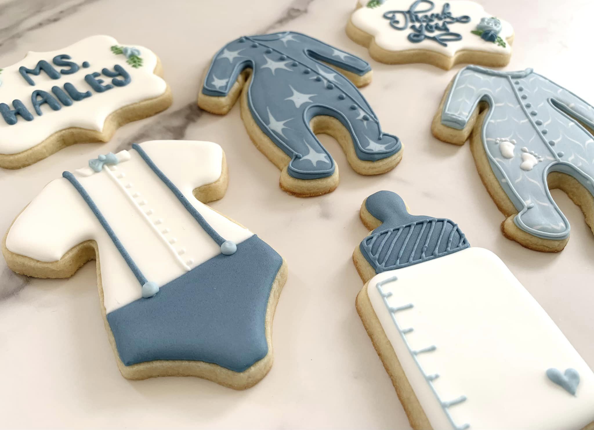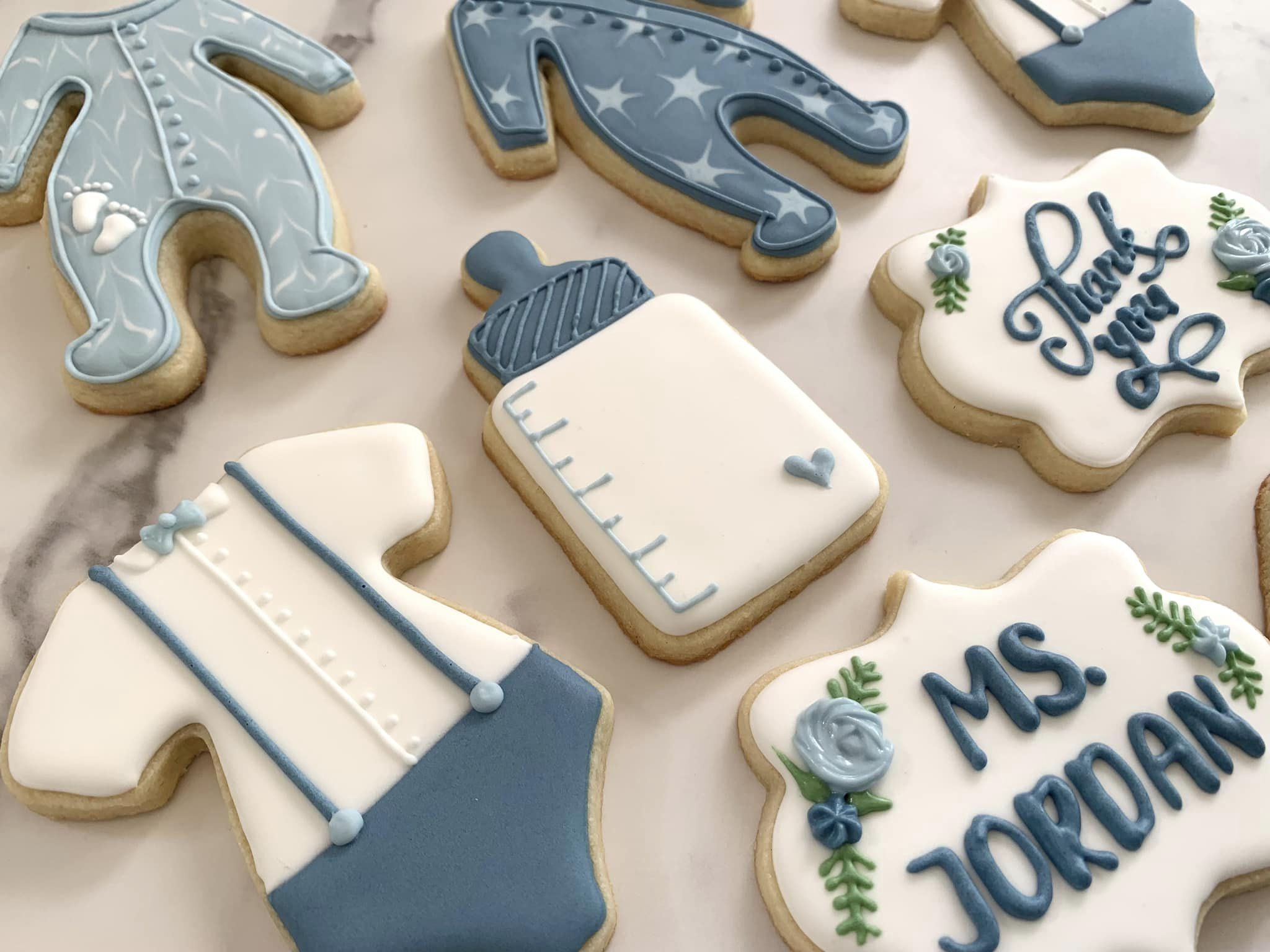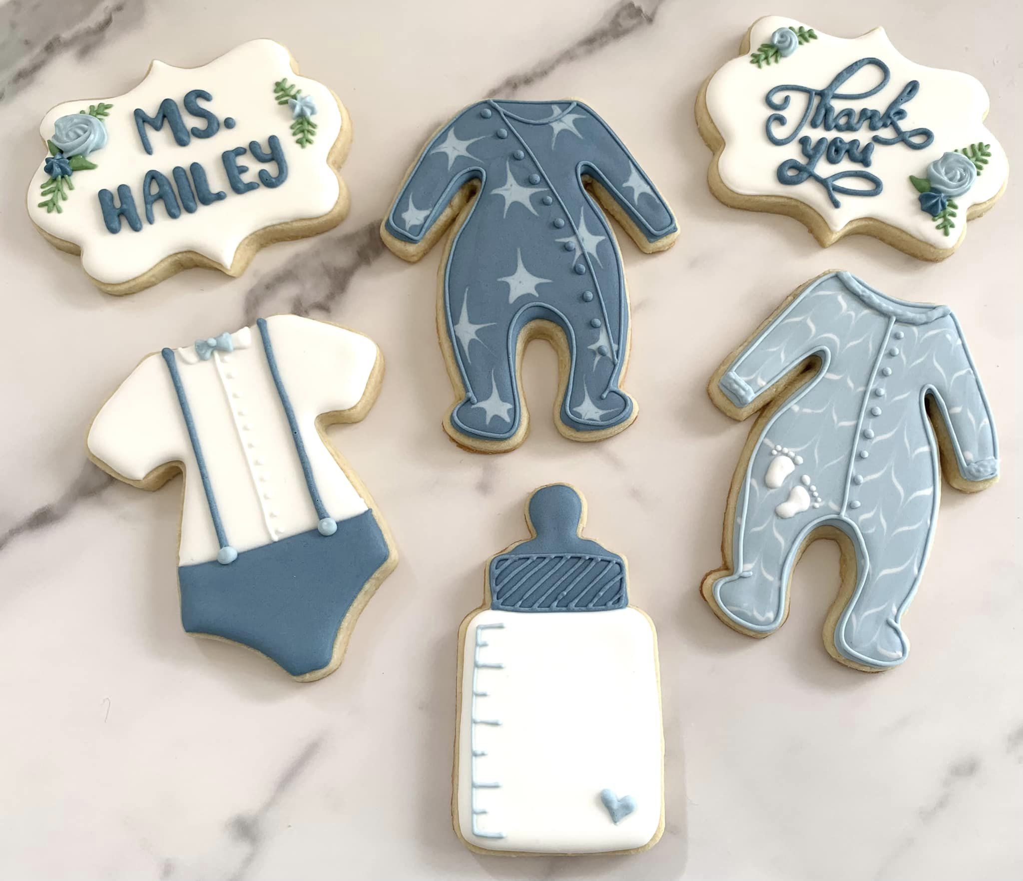 Blue Thank YouCookies These cute little morsels are thank you cookies for some infant daycare teachers. I love that shade of dusty blue!