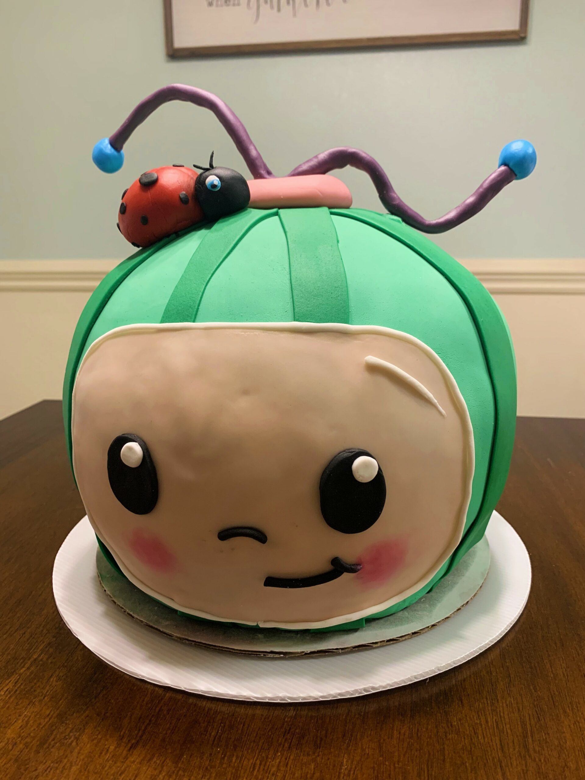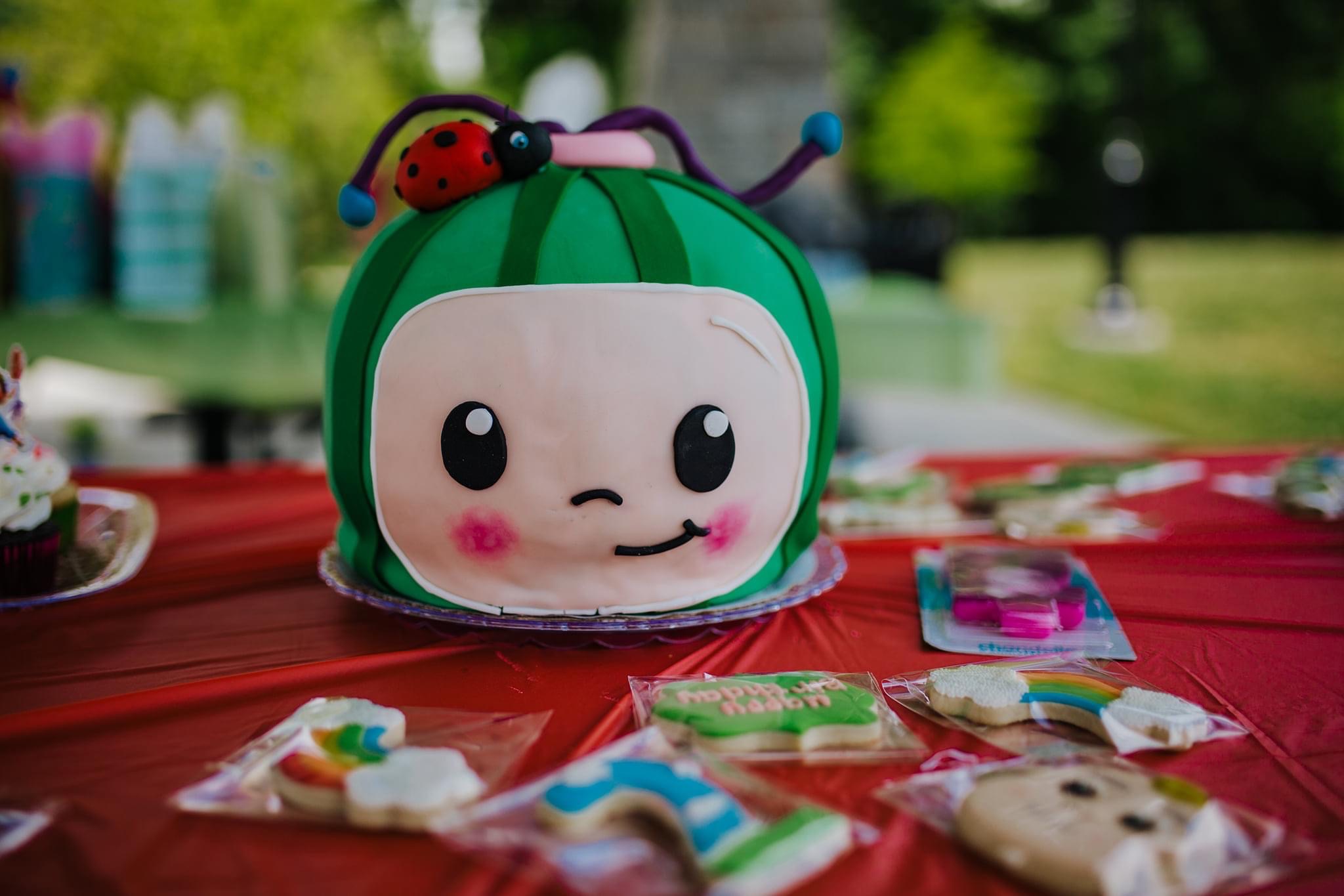 Cocomelon is a popular children’s education and entertainment brand on YouTube, known for its nursery rhymes, educational videos, and original songs. I was so excited to create this unique and colorful cake for a child’s birthday party.