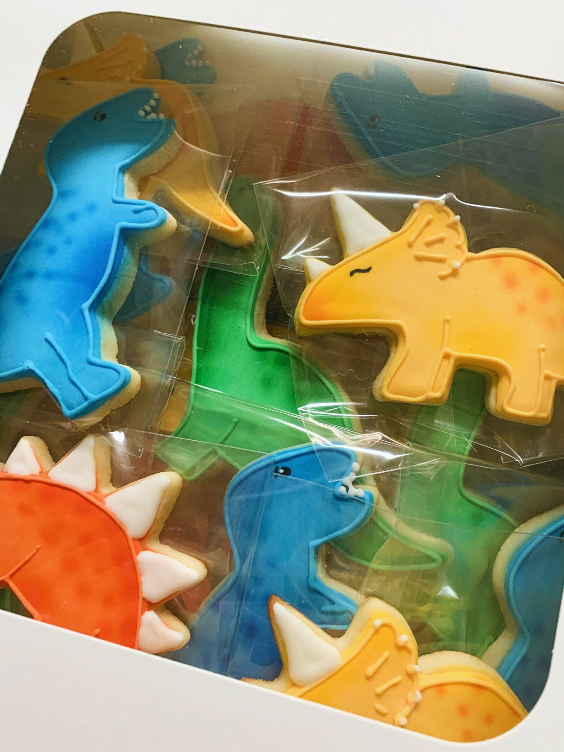 Do you have a dinosaur lover in your family? If you do, or you’re a fan of these ancient reptiles, you’re in for a treat! These adorable sugar cookies are decorated with royal icing and an added air brush texture. These colorful dinosaurs were created for a child’s birthday party — aren’t they so cute?!
