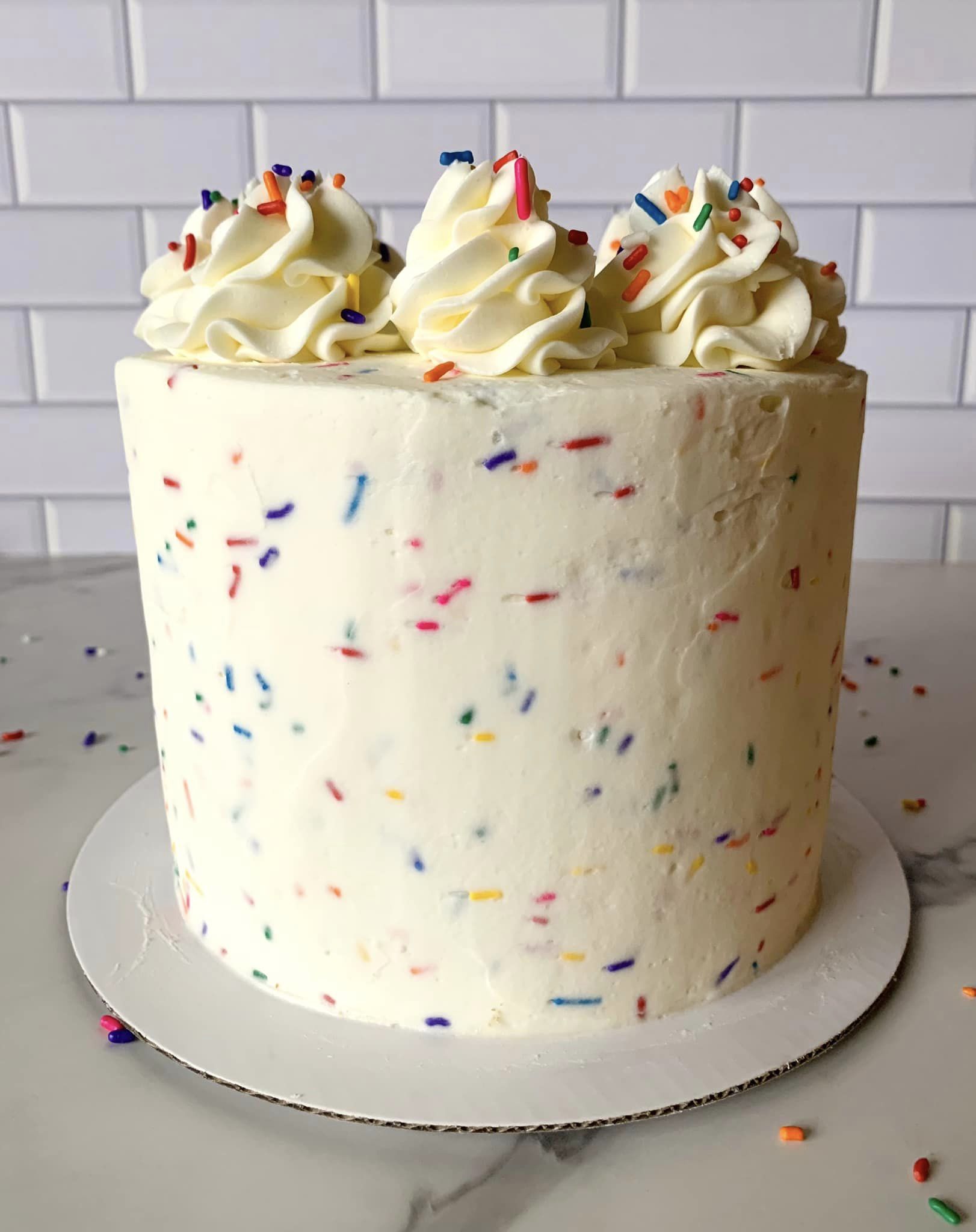 I cannot wait to deliver this cake!!! While it may look simple, it is for such a special event — a gender reveal! The inside cake layers are colored to reveal the surprise! So blessed to be a part of so many important journeys and special memories.
