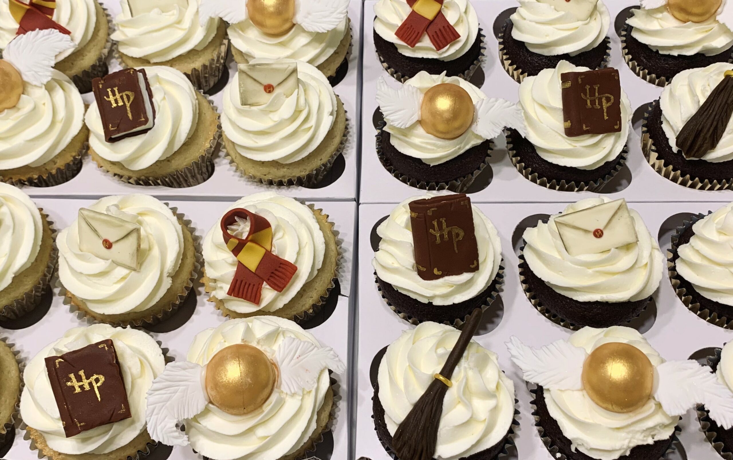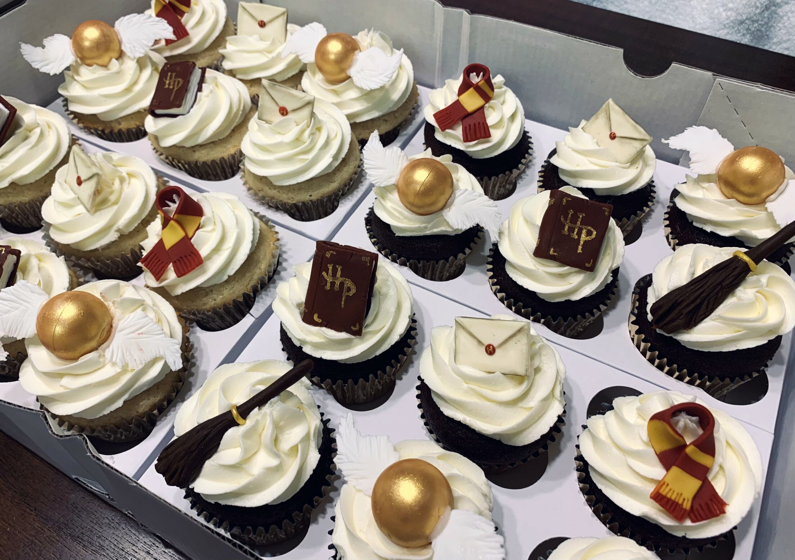 Harry Potter inspired cupcakes are a fun and creative way to bring a touch of magic to any occasion. These cupcakes are decorated with themes and details from the popular book and film series. Harry Potter inspired cupcakes can be made in a variety of flavors — these cupcakes are chocolate and vanilla with an ermine buttercream frosting. The cupcake toppers were created with fondant and chocolate.