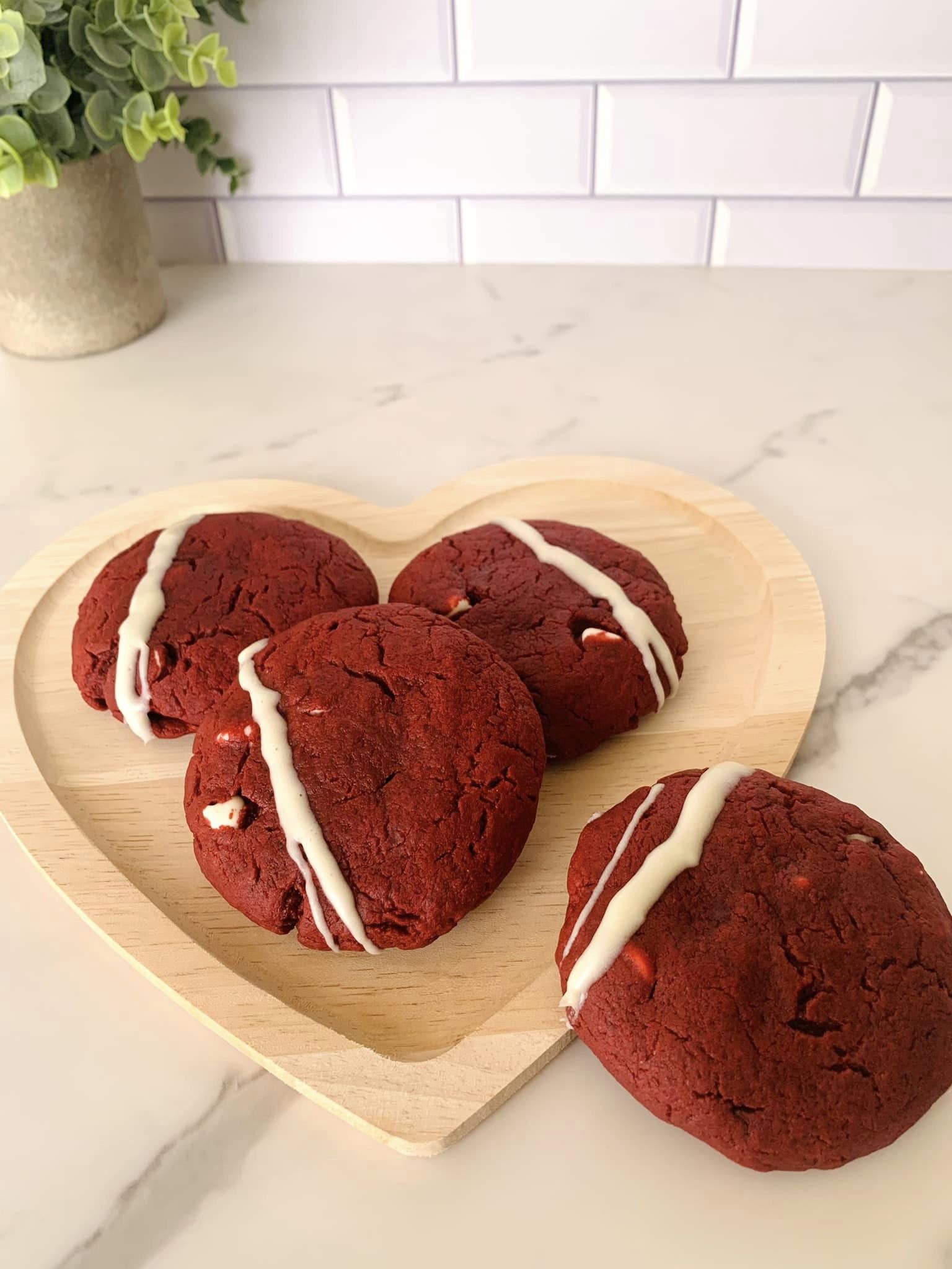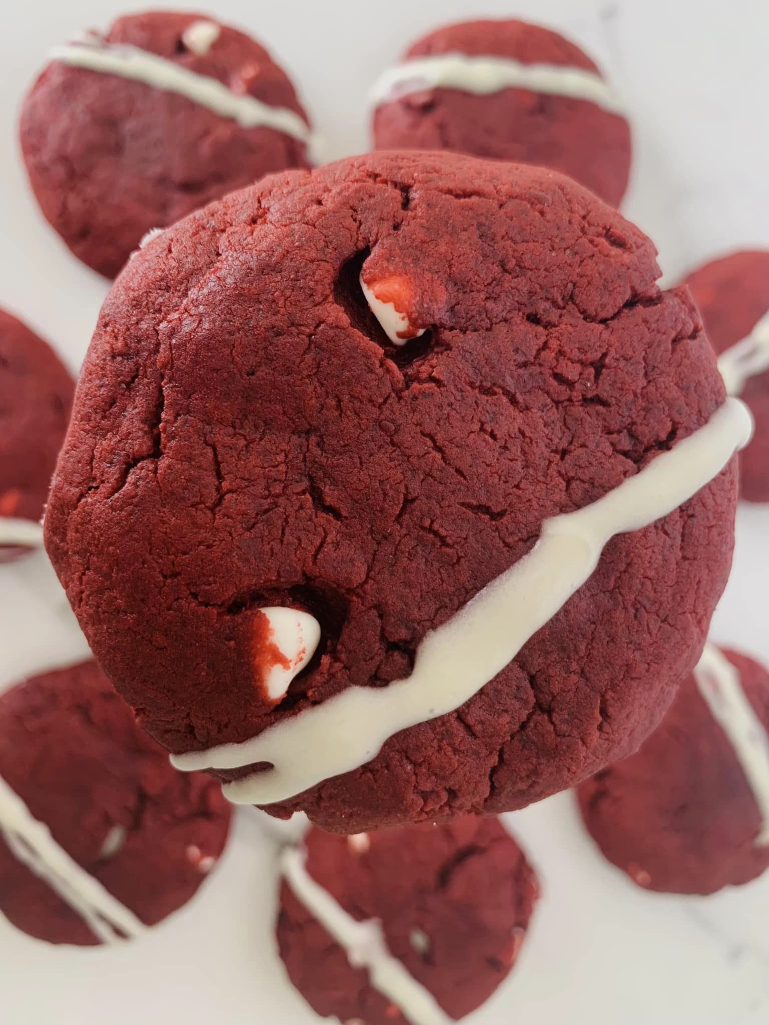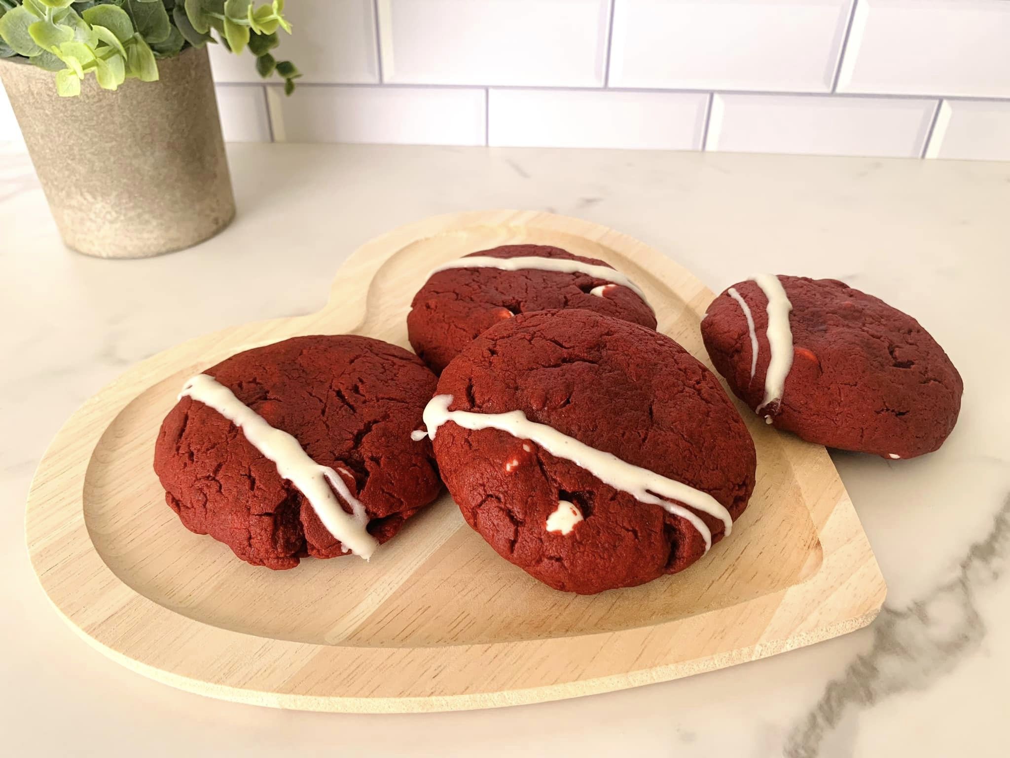 Stuffed Red VelvetCookies New flavor alert! Today I tested out some cream cheese icing stuffed Red Velvet Cookies with cream cheese and white chocolate chips. Yum!