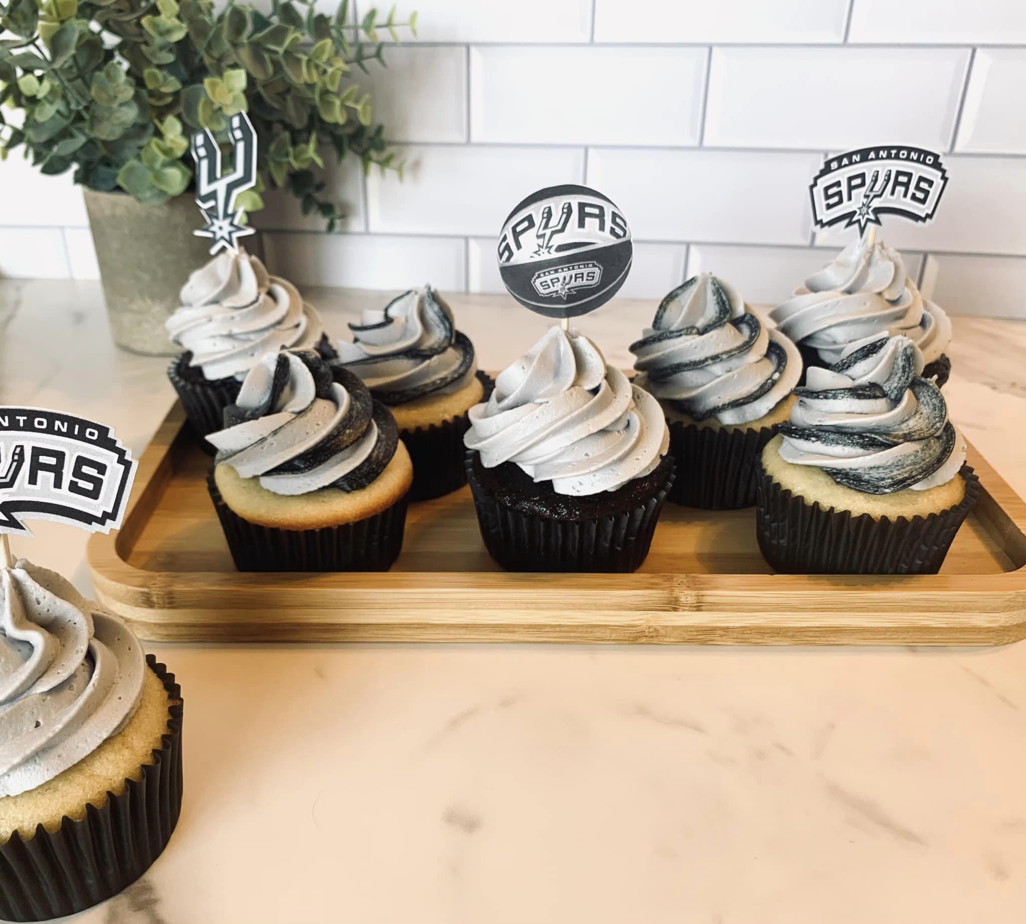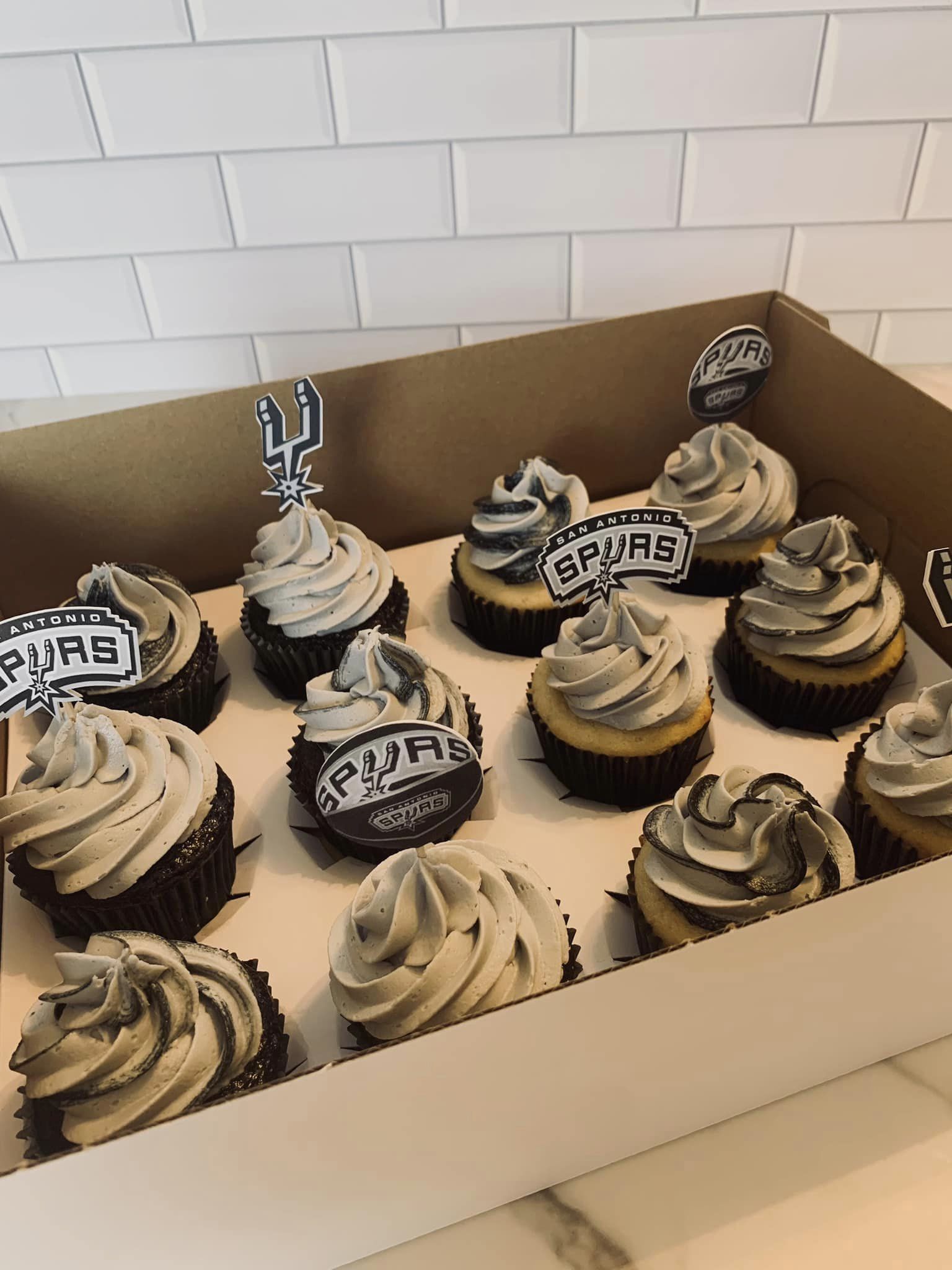 Spurs SweetsCupcakes Who doesn’t love cupcakes? These handheld treats are chocolate and vanilla with buttercream icing colored to match the Spurs Basketball team!
